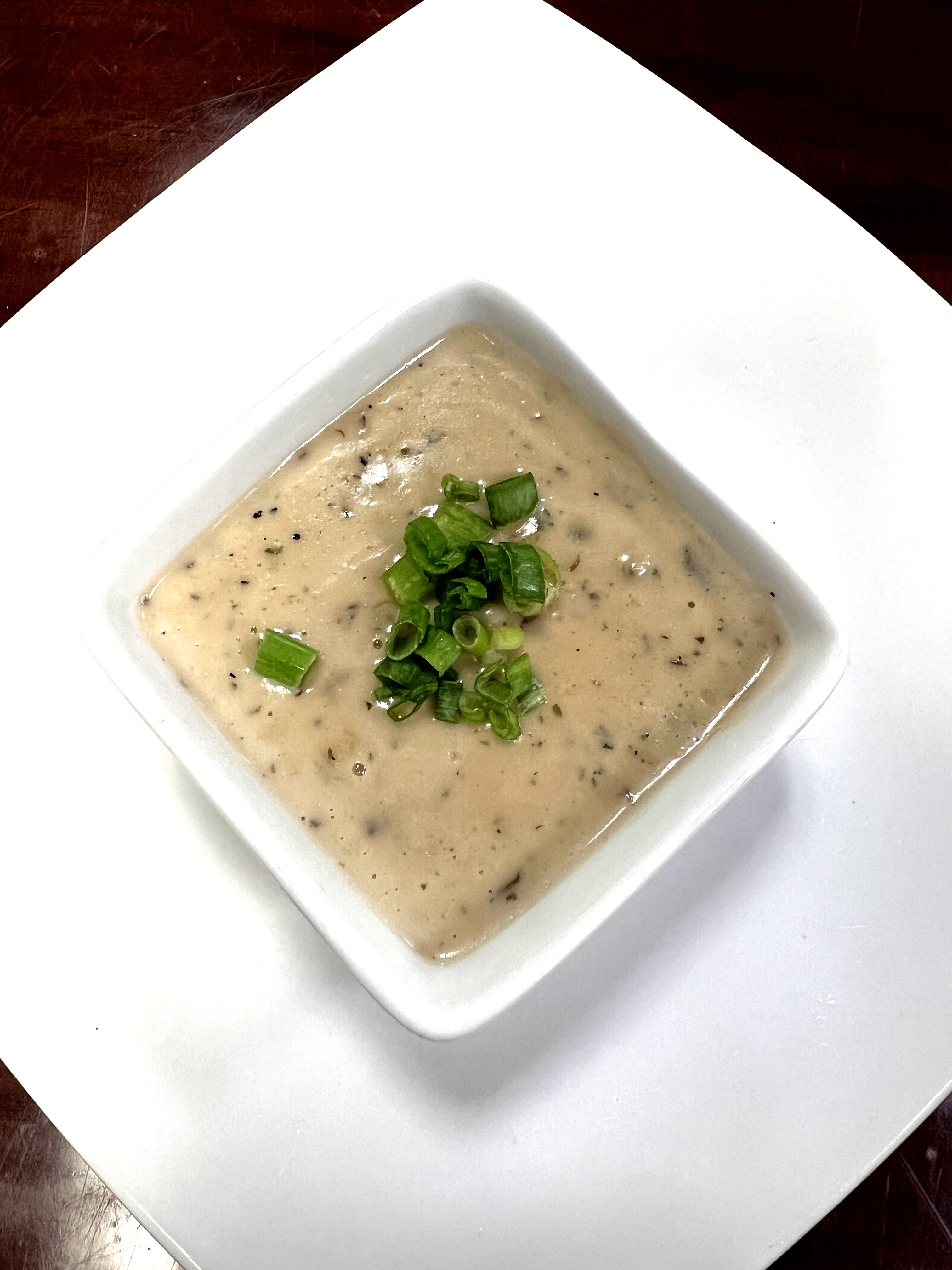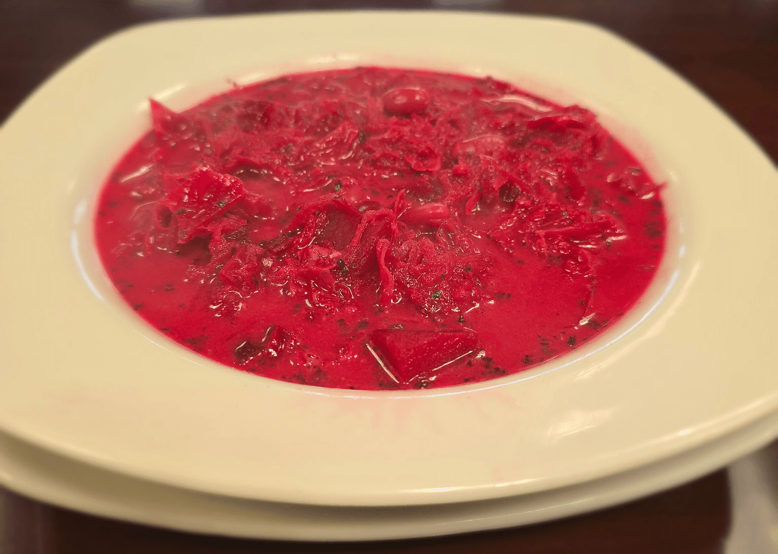 Beets, carrots, potatoes, onions, white beans, celery, cabbage cooked in a homemade smoked bones broth finished with heavy cream