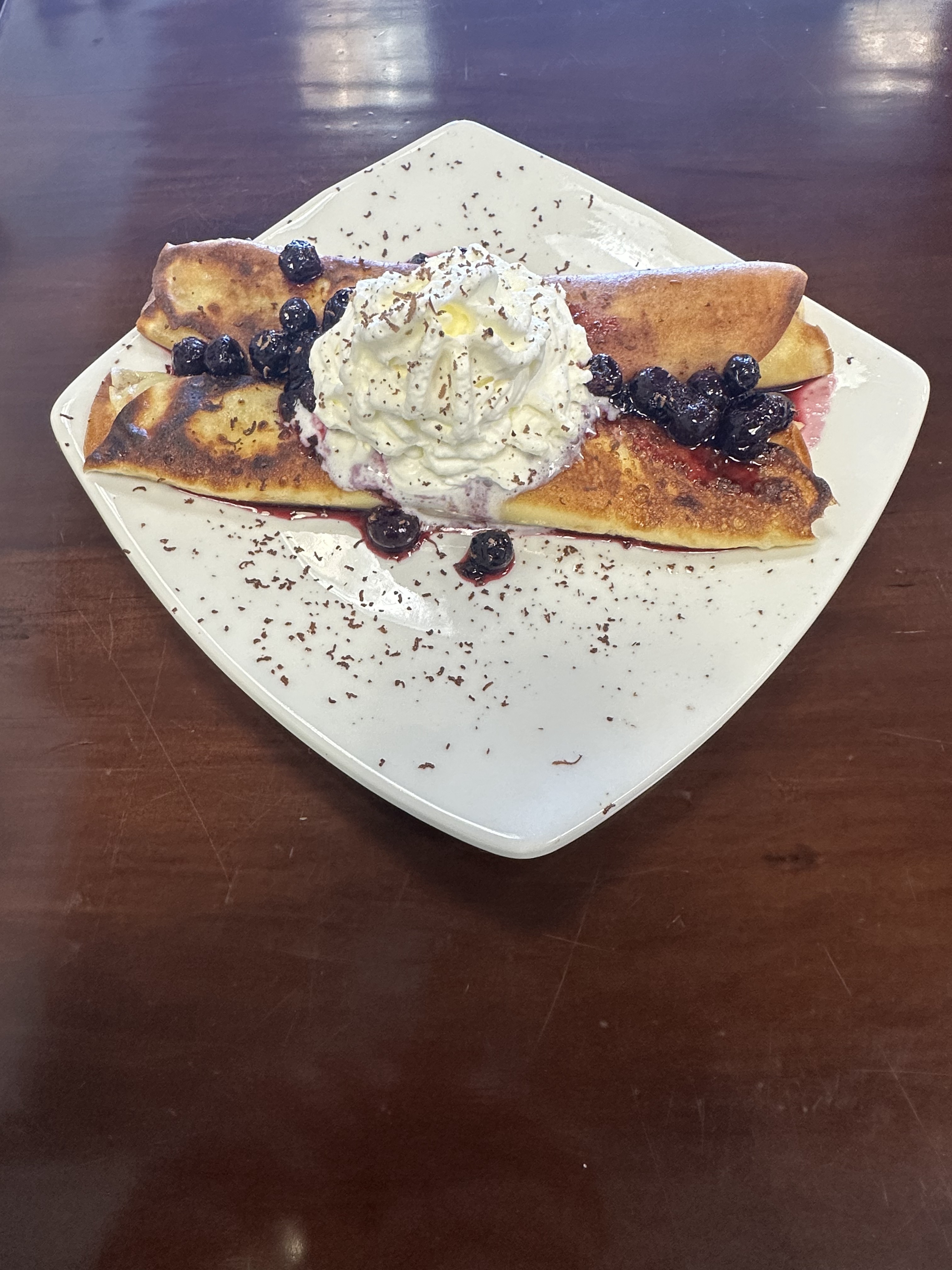 Topped with macerated strawberries & mint or blueberries & lemon and whipped cream